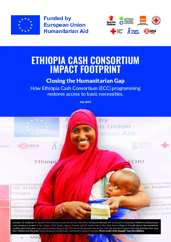 In response, the Ethiopian Cash Consortium (ECC), led by Save the Children alongside six experienced partners, implemented a 22-month project funded by the European Civil Protection and Humanitarian Aid Operations (ECHO). The project delivered rapid, dignified, and flexible Multi-Purpose Cash Assistance (MPCA), targeting the most vulnerable populations, including internally displaced persons, returnees, migrants, refugees, and host communities in conflict- and drought- affected areas across seven regions.