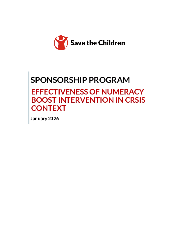 Kayin State in Myanmar, represents a fragile context which undermined educational access and quality and children often face linguistic and cultural barriers within a predominantly Burmese curriculum. In crisis-affected and low-resource environments, community-led initiatives have proven essential for sustaining children’s learning opportunities. Early numeracy development is particularly vulnerable in such settings although numeracy skills—rooted in conceptual understanding—are fundamental for lifelong learning and economic participation. Save the Children’s Numeracy Boost initiative responds to these challenges through a holistic model that integrates student assessment, teacher development, and community engagement. However, evidence remains limited on its adaptation in settings where formal teacher training is constrained due to restricted access. This study addresses this gap by evaluating a modified implementation of Numeracy Boost—focusing on student assessment and community engagement—in Kayin State, Myanmar.