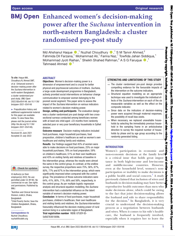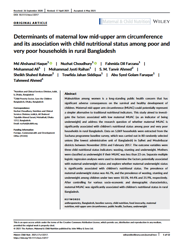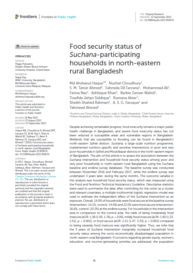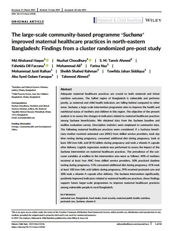 This resource is a collection of 6 success stories from the Suchana programme in Bangladesh. Together, the factsheets present key components of Suchana’s multisectoral approach to reducing chronic undernutrition among children under two in poor and very poor households in Sylhet and Moulvibazar. They cover interventions and learning across homestead food production, poultry, aquaculture and fisheries, growth monitoring and promotion, counselling, adolescent interventions, social protection advocacy, village savings and loan associations, income generating activities, market system strengthening, the graduation approach, and climate resilience technology. As a set, the factsheets provide a concise overview of how Suchana linked nutrition, livelihoods, behaviour change, women’s empowerment and resilience within one integrated programme.