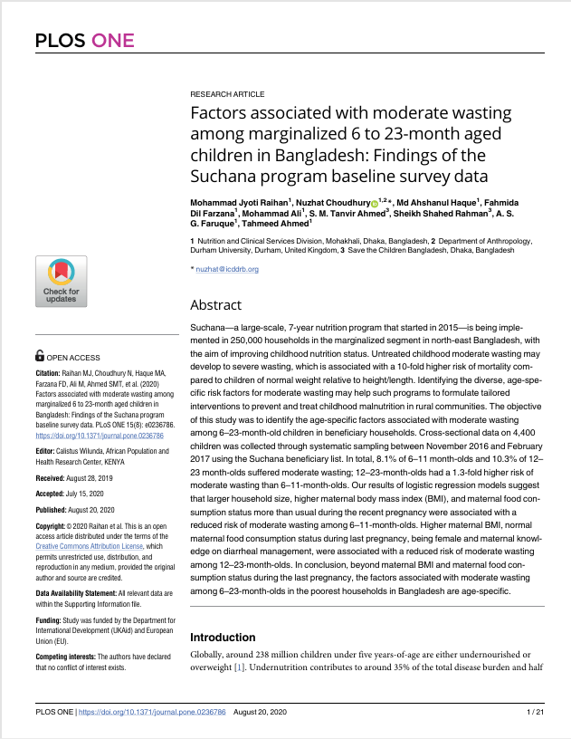 Evidence of the impact of community-based nutrition programs is uncommon for two main reasons: the lack of untreated controls, and implementation does not account for the evaluation design. Suchana is a large-scale program to prevent malnutrition in children in Sylhet division, Bangladesh by improving the livelihoods and nutrition knowledge of poor and very poor households. Suchana is being implemented in 157 unions, the smallest administrative unit of government, in two districts of Sylhet. Suchana will deliver a package of interventions to poor people in about 40 randomly selected new unions annually over 4 years, until all are covered. All beneficiaries will receive the normal government nutrition services. For evaluation purposes the last 40 unions will act as a control for the first 40 intervention unions. The remaining unions will receive the program but will not take part in the evaluation. A baseline survey was conducted in both intervention and control unions; it will be repeated after 3 years to estimate the impact on the prevalence of stunted children and other indicators. This stepped wedge design has several advantages for both the implementation and evaluation of services, as well as some disadvantages. The units of delivery are randomized, which controls for other influences on outcomes; the program supports government service delivery systems, so it is replicable and scalable; and the program can be improved over time as lessons are learned. The main disadvantages are the difficulty of estimating the impact of each component of the program, and the geographical distribution of unions, which increases program delivery costs. Stepped implementation allows a cluster randomized trial to be achieved within a large-scale poverty alleviation program and phased-in and scaled-up over a period of time. This paper may encourage evaluators to consider how to estimate attributable impact by using stepped implementation, which allows the counterfactual group eventually to be treated.