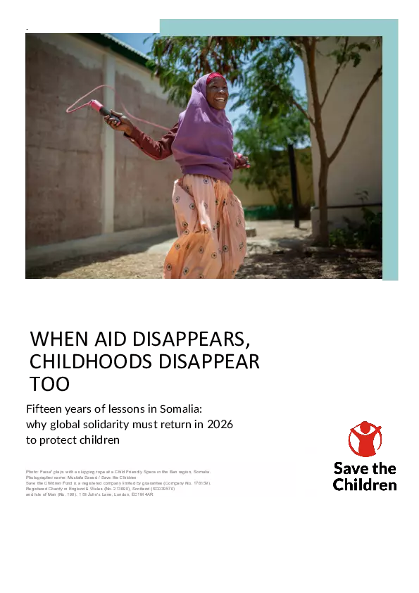 This report examines how fifteen years of recurring humanitarian crises in Somalia have demonstrated the life-saving importance of timely, sustained international aid—and the devastating consequences when that aid is withdrawn. Drawing on lessons from the 2011 famine, the 2017 drought response, the compounded shocks of COVID-19 and climate extremes between 2020 and 2022, and the historic funding collapse of 2025, the document shows that early warning systems only protect children when backed by rapid action, flexible funding, and integrated multi-sector services. While Somali communities have shown remarkable resilience, escalating drought, conflict, displacement, disease outbreaks, and severe aid cuts have pushed millions of children deeper into hunger, malnutrition, interrupted education, and protection risks. The report argues that the sharp reduction in humanitarian financing has reversed years of progress and created a preventable crisis in which children are paying the highest price. It concludes with an urgent call for restored global solidarity, early anticipatory action, and sustained investment in child-focused humanitarian systems to prevent another catastrophic failure in 2026.